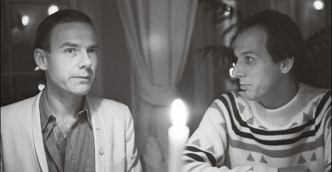 Robert Fripp and Adrian Belew at the Portobello Hotel, London on September 29, 1981.