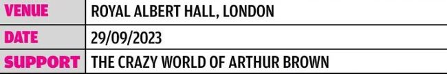 Arthur Brown is a national, international and cosmic treasure. Why he’s not a Knight Of The Realm, or the Government’s official Charismatic Authority/Grand Druid Of Freakdom, is a mystery but he is the God Of Hellfire, at least. Tonight, surrounded by Day-Glo mannequin props – and in his trademark facepaint and various sequinned britches, boots and capes – he and his excellent bluesy Crazy World warm up for his long-standing friends and collaborators.