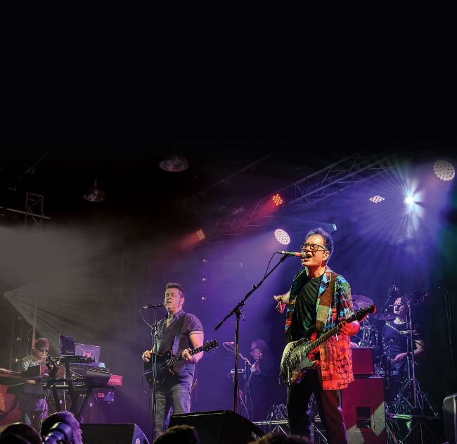 Afew songs into tonight’s show, keyboardist Ryo Okumoto takes the microphone. Alongside his consummate musical skills, Okumoto is equally known for his showmanship and zaniness. Indeed, tonight he has already unleashed a couple of dazzling solos and been air drumming enthusiastically when otherwise unoccupied.