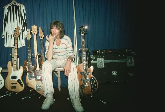 The late, lamented Chris Squire, pictured resting backstage at a concert.