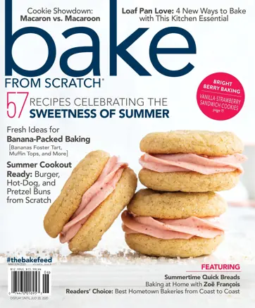 With the return of bustling farmers’ markets and the flood of peak summer produce in stores, we have one thought: bring on the berries, the stone fruits, and all of the rich, ripe tomatoes! We’ve got big plans for said tomatoes: popping them into our Upside-Down Heirloom Tomato Cornbread. And the berries? They’re gracing the blueberry-packed and custard-filled Gâteau Basque Loaf, just one of the many ways we’re twirling up the 9x5-inch loaf pan, and our sweet cover star, Vanilla-Strawberry Sandwich Cookies. Bananas also get their due with our banana baking bonanza. But this issue goes beyond celebrating summer produce. It’s a celebration of all that summer brings to bakers. First, we check in with baking and blogging inspiration Zoë François in her oasis of a kitchen in Minneapolis, Minnesota. Then we turn it to our readers. We asked you, dear readers, what your favorite places are, institutions that have earned a warm place in the hearts of many. And you delivered. Find out which of your hometown bakeries made the grade and go ahead and bookmark the whole list. It might be time for a road trip!
