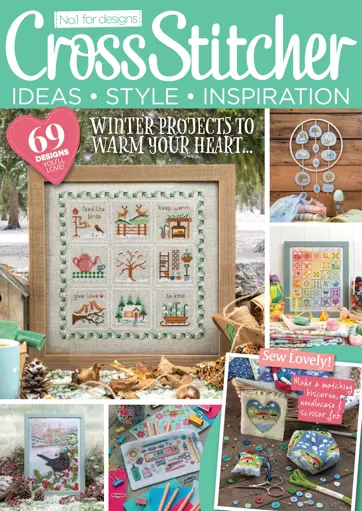 You’ll find inside some fruit-themed Valentine’s cards to stitch for the apple of your eye, plus we’ve a special Valentine’s Day card Ready, Steady, Stitch challenge. We’ve also got a beautiful winter blackbird picture, a teatime alphabet, a patchwork style design and much more! Plus, we have all your favourite regular features, including must-read reader stories, designer interviews and the latest stitching news!