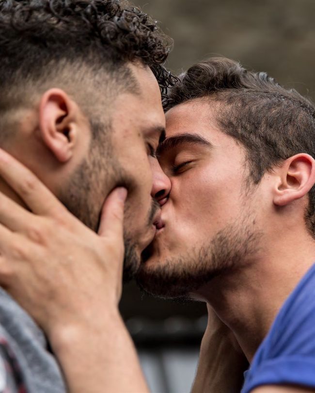 GAY COUPLE KISS AT TEL AVIV PRIDE.
