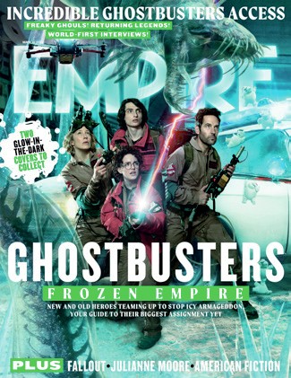 GHOSTS: BE AFRAID. AFTER TEASING US IN AFTERLIFE, THE PARANORMAL OGS ARE BACK, TEAMING UP WITH THE NEW BREED TO BATTLE SOME FEARSOME — AND FROSTBITTEN — UNFAMILIAR FOES IN GHOSTBUSTERS: FROZEN EMPIRE. PROTON PACKS AT THE READY…