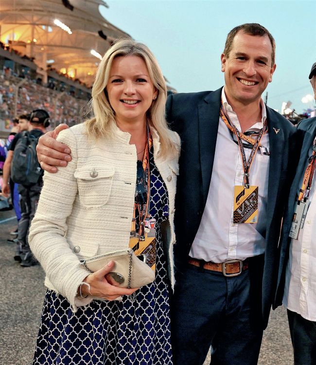The couple’s joy is clear as they join the King and Queen for the Coronation Concert in May, while Peter’s love for motorsport takes them to the Bahrain Grand Prix (below)