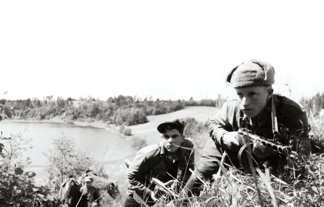 Partisan scouts look for Germans near Leningrad