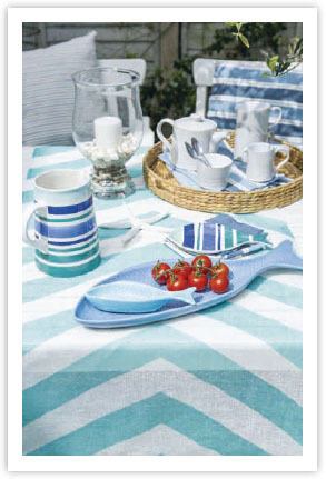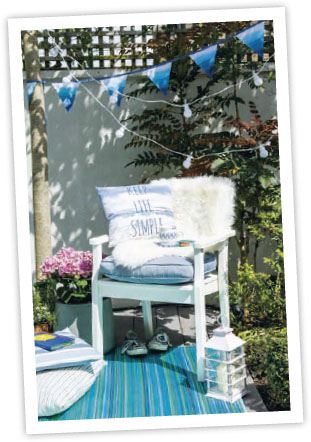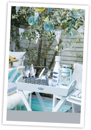 Mix nautical stripes to add a beachy touch, with the addition of fish motifs to transport us back to sun-drenched days by the seaside. A splash of yellow will evoke a more tropical vibe and give the scheme a hint of sunshine, while outdoor rugs are especially handy for adding an extra punch of colour. Head to Ikea for an inexpensive table, bench and chair set and swathe the table with nautical stripes for the ultimate seaside feel. Check out Primark Home for great value cushions and tealights for the finishing touches.