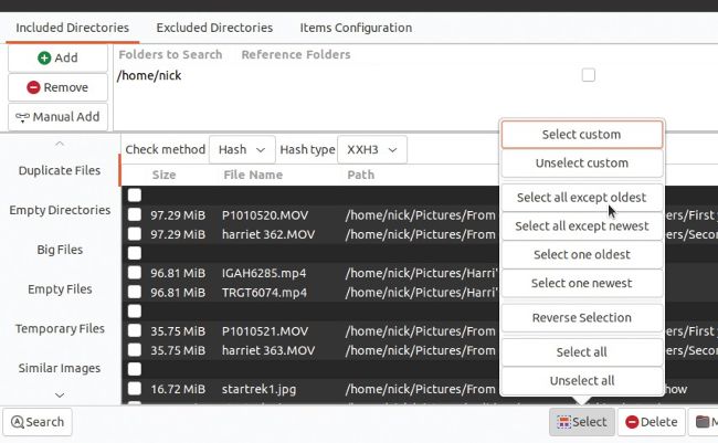 Manually selecting files by hand can be time-consuming. Let Czkawka’s automated select tool lend a hand.