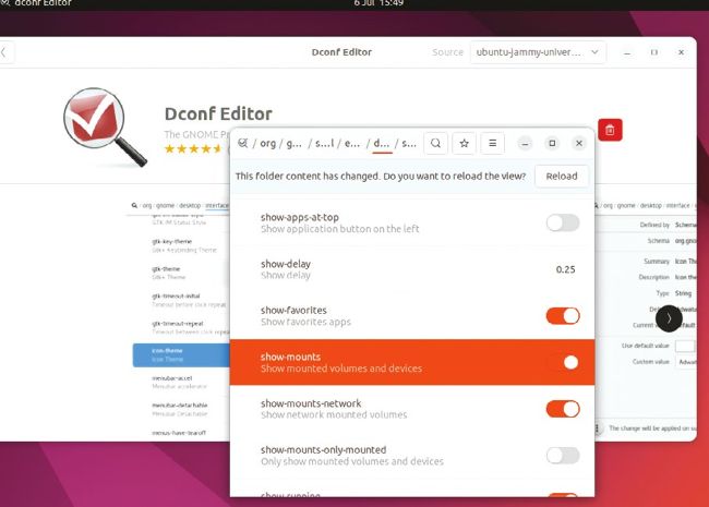 $ gsettings get org.gnome.shell. extensions.dash-to-dock show-mounts