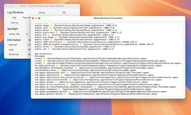 This long list of Quick Look generators includes those provided by the system, and third-party App Extensions.