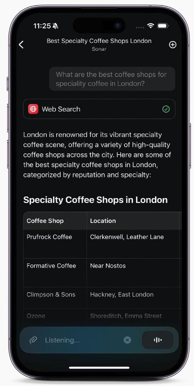 The app itself is actually pretty straightforward to use, with a type- or speak-to-search field and a choice of AI services
