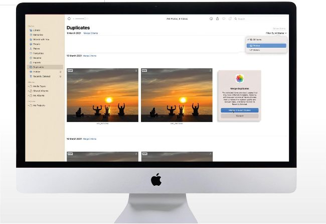 Discover and sort duplicate clips and stills for a cleaner Photos library
