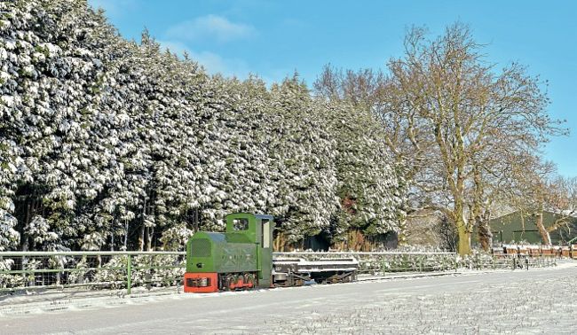 No railways were operating amid January’s snowfall, but the Statfold Barn Railway presented a Christmas card backdrop during a shunting operation on a sunny January 25. Here, O&K Type RL3 0-4-0DM 20777/1936 pauses between Strawberry Field station and Oak Tree Halt.