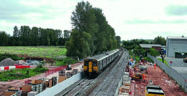 GWR Class 150 units Nos. 150244 and 150234 pass the construction site of Marsh Barton station on October 7, forming the 13.23 Exmouth to Paignton train.