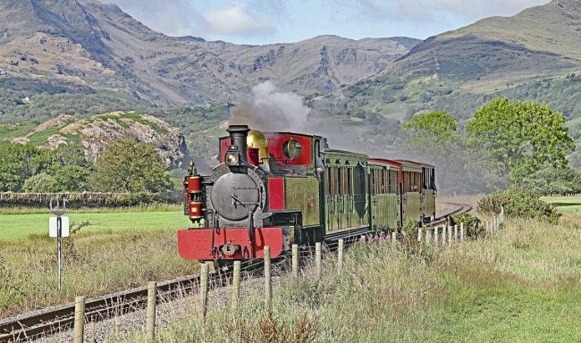 WHHR’s Hunslet 2-6-2T Russell hauls a train of WHHR heritage carriages towards Pont Croesor in the late afternoon of June 24. After pretty dire weather all day, the sun broke out over this last train back to Harbour station!