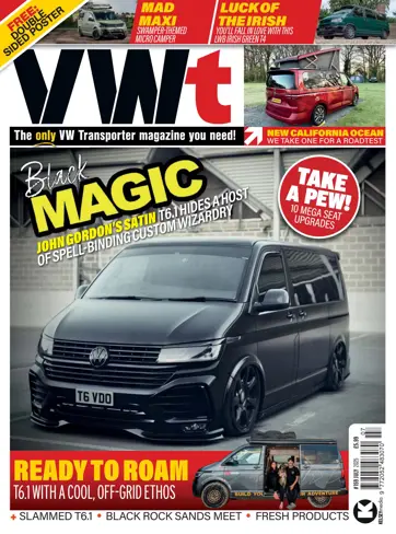 You’ll be enchanted by Voodoo Developments’ matt wrapped T6.1 which features a whole raft of wizardry – and if you want the ultimate micro camper, check out the swamper-style Caddy Maxi we’ve got in this issue. We’ve got some cool seat upgrades, a tasty Irish Green T4 and test out the spanking new California.
