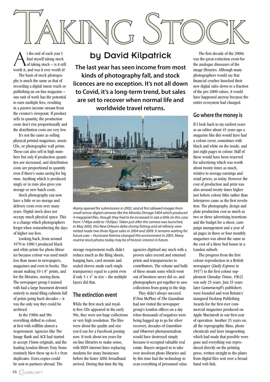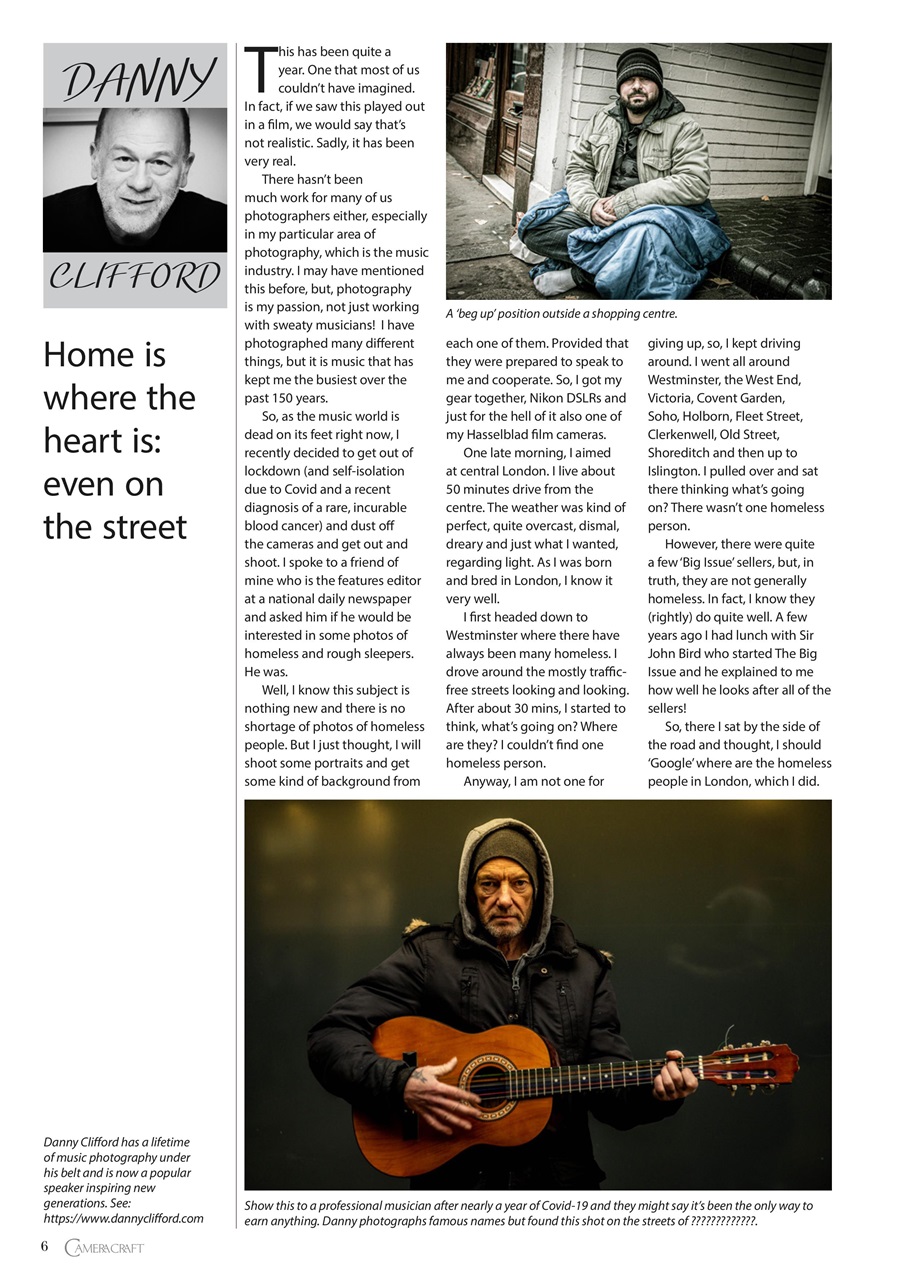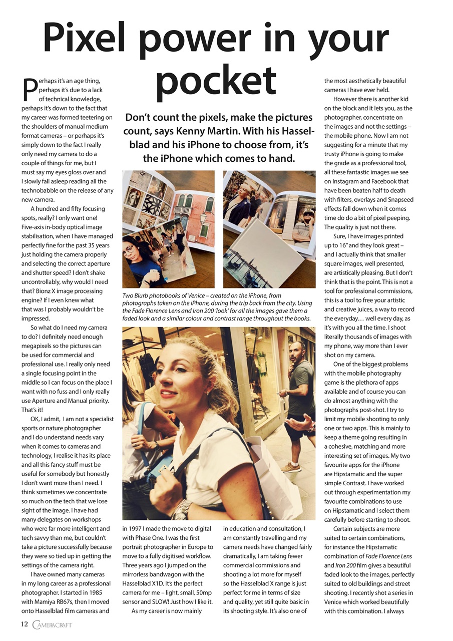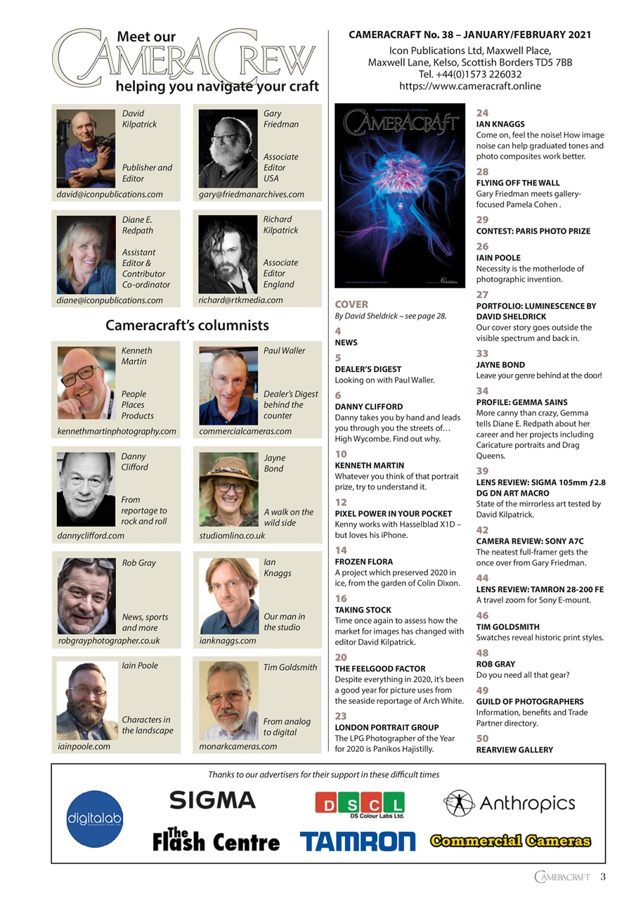 Cameracraft is edited and produced by David Kilpatrick. It features original portfolios, interviews and profiles, equipment tests and reviews, news, techniques and ideas to improve your creative photography or your photographic business.