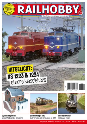 In dit decembernummer laat modelbouwer Cor Raad een polderschuit in H0 te water. Guus Ferrée belicht het ontstaan, de bouw en de inzet van de DR serie 45. In Railtest wordt dezelfde serie, BR 45, de zwaarste en grootste Duitse goederenstoomlocomotief van Märklin aan de tand gevoeld. In Uitgelicht neemt Chris van Diesen Roco’s nieuwste 1200 in het bruin en Berlijnsblauw onder de loep. We gaan aan de slag met de karakteristieke Nederlandse dijkwoning van Tilly Models en Arie den Heijer maakt de Artitec sluitseinen zonder functiedecoder knipperend. We laten u meekijken met de grote en zeer complete Märklin-baan van de Pakistaanse familie Mahmood. De vloot dubbeldekkers VIRM is halverwege de levensduur en ondergaat in de werkplaats Haarlem een grote revisie. Voorafgaande wordt het remproevenprogramma doorlopen en Railhobby was daar bij. Sander Broerse bezoekt de bron van de kalktreinen; de treinreis van Dolime, van Hermalle-sous-Huy naar Veendam. Na de artikelen over het naderende einde van de kolenmijnen bij de oosterburen is het tijd om te kijken hoe een mijn in model kan worden nagebootst. Sevrien Ferrée blikt terug op de SHM fotorit die herinnerde aan de bijzondere hoofdstukken in de tramhistorie. Dit en nog veel meer in Railhobby 406.