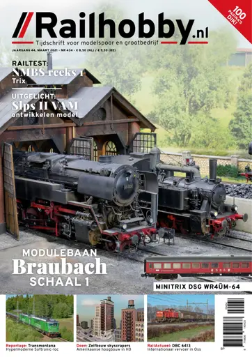 In Railhobby 434 bespreken we in Baan in beeld Braubach. Deze baan in schaal 1:32 van Walter Smit had het hoogtepunt van On traXS! 2020 moeten worden. Omdat ook On traXS! 2021 geen doorgang vindt, leest u in dit nummer alles over deze uitzonderlijke modelbaan. In deel 4 van Baanontwerp vervolgen we de serie voor (her)starters met een klassieke modelbaan op een vlakke plaat. Dit railplan combineert de stoomtijd met het heden. Op beurzen hebben de meeste modelbanen en zeker de diorama’s een passende achtergrond. In deel 2 van Achtergronden bouwt Jaap Stoter de achtergrond in reliëf met ledverlichting. Sinds 2006 bouwt Rob Schot met een kleine groep modelbouwers van de Apeldoornse modelspoorclub VAMES aan een modulebaan naar Amerikaans voorbeeld. Van bouwpakketten heeft hij de overstap naar scratch building gemaakt. De NS 1200 is een tijdloze machine die ondertussen al bijna zeventig jaar op de Nederlandse sporen aan te treffen is. Reden te meer om in de serie Treinsamenstellingen eens te kijken of we samenstellingen kunnen maken met dit icoon van het Nederlandse spoor. In een Reportage reizen we af naar Zuid-Afrika, waar vanwege de Covid-19-pandemie een deel van de infrastructuur is gestolen.