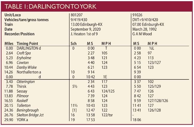 On a recent rail rover trip, Railway Performance Society (RPS) magazine editor David Ashley analysed a run with nine-car ‘Azuma’ No. 801207 working the 08.30 Edinburgh-King’s Cross on a fine September morning. The train was booked to call at Berwick, Darlington and York, in addition to Newcastle, and took exactly four hours. Just one delay was suffered, of 3min at Werrington Jct.