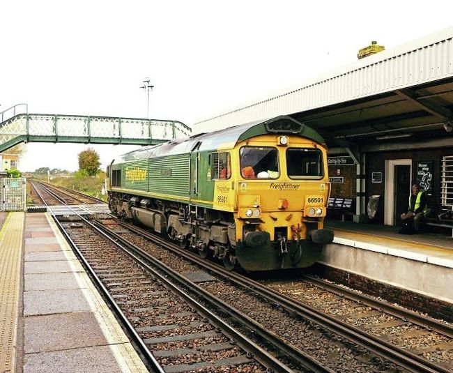 PREPARING THE WAY: Between October 30 and November 1, a series of Freightliner locomotive movements took place, originating at the operator’s Southampton Maritime Terminal for route learning ahead of planned new aggregate traffic between Westbury and Crawley New Yard. The trains will be pathed via the Coastway West route, with the Arun Valley line, which was also included in the itinerary, as a diversionary route. Class 66 No. 66501 Japan 2001 is pictured passing through Goring-on-Sea station on the outward (Southampton Maritime-Crawley New Yard) leg of the first run on October 30.