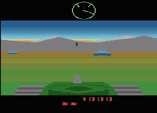 While visually very different from the arcade original, this Atari 2600 game is still great to play. Gone is the first‐person view, with the player sitting just above and behind their tank, and also absent are those clean vector lines. So, while a Battlezone game only in name, there’s still plenty of blasting fun to be had here.