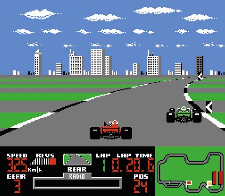 Given that it appeared on the NES and Game Boy, it’s only reasonable that Ferrari Grand Prix Challenge is essentially an arcade racer, although it’s one that respects the sport it’s depicting. So for example, overtaking requires you to cleanly pass a rival. While bumping off them results in both cars spinning out, then your opposite number gets a head start on you. Tyre wear is another area where the game attempts to reflect real-world F1 racing, in so much as a pit stop is required if you come off the track, skid on oil patches and collide with other vehicles too often. Additionally, you get kicked out of the game if you fall down to a certain position, which doesn’t happen in F1, but it ratchets up the tension.