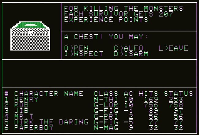 » [Apple II] Adventurers should be wary of opening chests: some of them are secured by traps that need to be disarmed.