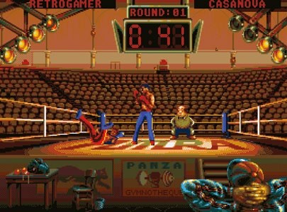 ◼︎ The Amiga version ofPanza Kick Boxing, programmed by Pascal’s Loriciel colleague Nicolas Massonnat, was developed alongside its Atari ST brother, released at the same time, and is virtually identical to it. The Amiga game sold better than the ST version, though, so this is the one most people are familiar with.