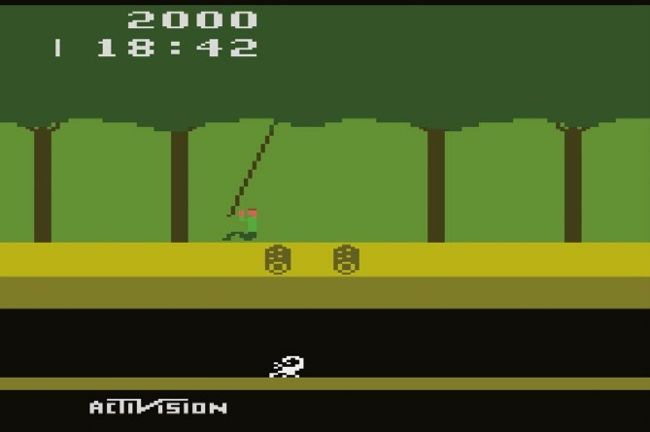 Most games took place on a single screen. I wanted to improve on game realism, such as putting a realistic human figure in a game with realistic physics, and while I was at it I would exceed the single-screen design. I designed a side-view game such that when the player ran off the right side of the screen he reappeared on the left. But I realised that if I relied on ROM the world could only be about 16 screens wide, so I created a method of algorithmically generating the screens. With that technology I could make the jungle 256 screens wide.”