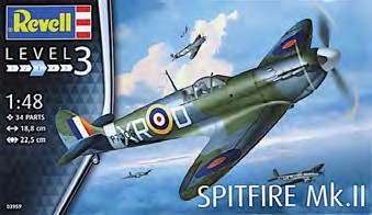The box contains three sprues of light grey/off white and one clear sprue of injection moulded plastic, one decal sheet and one colour assembly, marking and painting booklet. Colour call outs are for Revell paints. Surface detail and panel lines are raised, which identifies the kit as a relatively old one. The decal sheet contains markings for one aircraft on it.