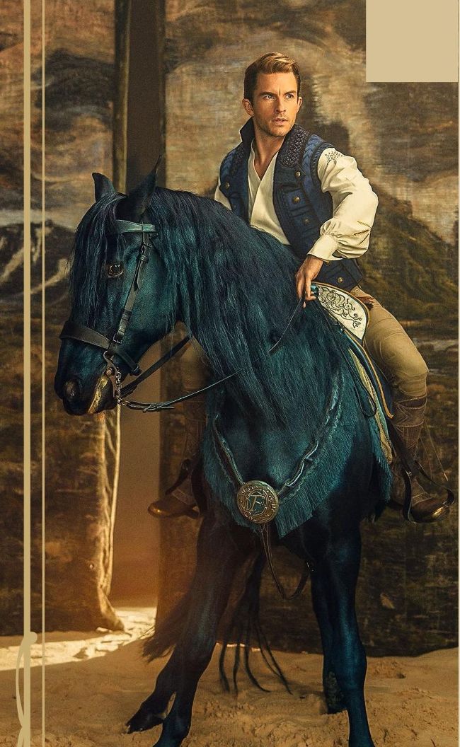 Jonathan Bailey as Fiyero. With a horse.