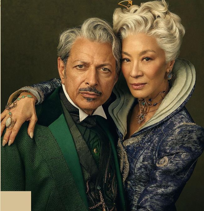Jeff Goldblum (the Wizard) and Michelle Yeoh (Madame Morrible).
