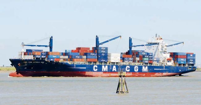 The 2010-built container ship CMA CGM Africa One arriving at Tilbury.