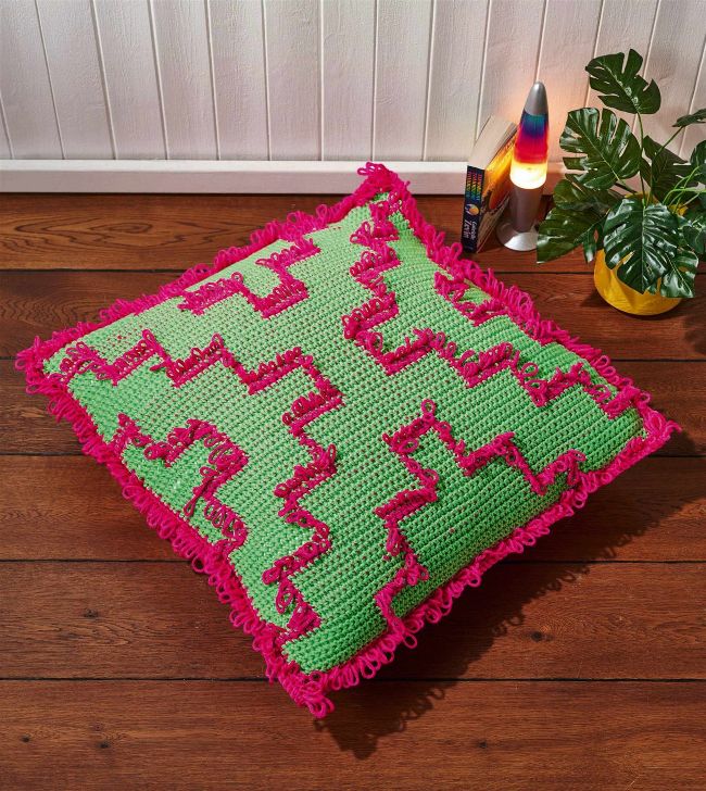 Loop stitch is fun to do, and a giant cushion will give décor a fresh look without causing your bank account too much stress!