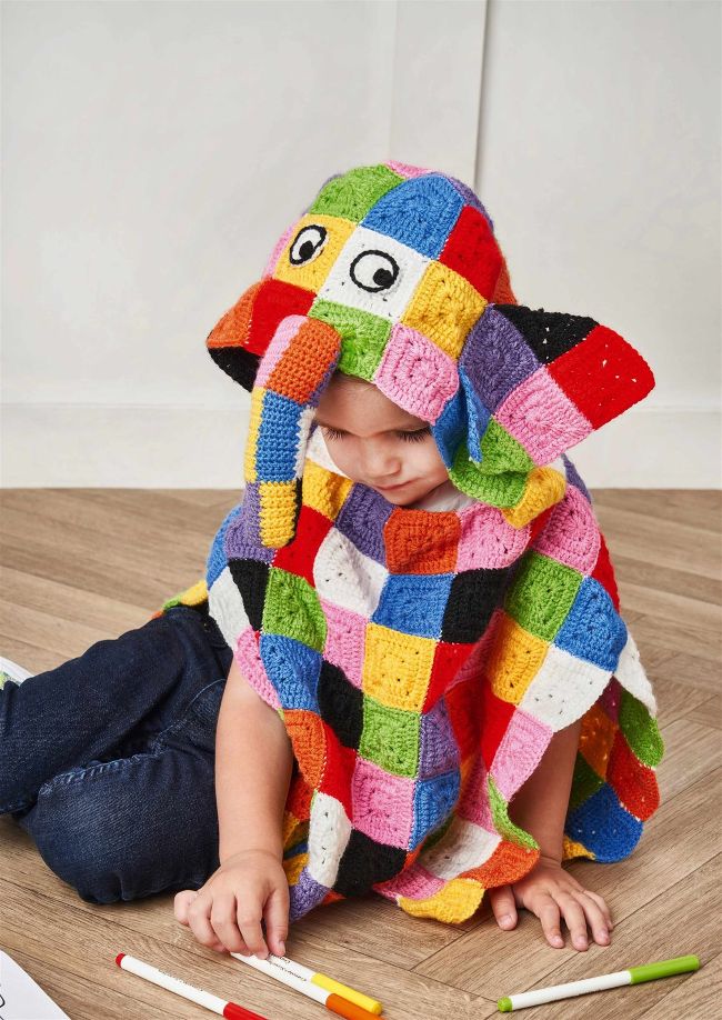 Kids can pretend to be Elmer the Elephant in this fun poncho by Kelly Wilson Moore