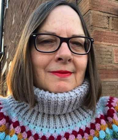 “I was thrilled to be asked to take part in this challenge. The brief was to design a winter blanket, and immediately I thought of cold evenings, snuggled on the sofa with a crochet throw. I wanted to create something nonfussy, but at the same time, a little quirky and with texture. With this in mind, I designed a stripy mesh pattern with added surface embellishment. I loved the colour palette, too!” Find Joanne at dannycatcrochet.com and on Instagram at @dannycatcrochet