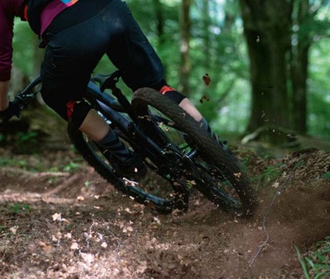 A shout from the front of our three-person train manages to find its way to my ears through the clatter of bikes and dust. “Watch out for the low tree!” yells former World Champion Manon Carpenter as she disappears rapidly round the next apex, despite being three hours deep into our ride. At five foot three, I shrug off the notion that a tree might be too low for me, only to drop a shoulder straight into the four-inch-thick trunk of a birch. Why I didn’t listen is beyond me, as I have no idea where I’m going. The dusty switchbacks have us all champing at the bit for the next turn as we wind our way down our penultimate descent of the day.
