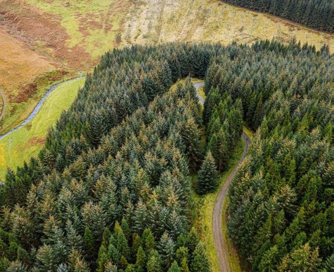 Our group paused at the high point of the ride. Huge wind turbines sprouted from the heather like giant white tulips. A bitter autumnal wind pushed and tore at rain clouds, granting us rays of golden light from the low sun then closing the curtains as an icy squall raced through. Despite the very obvious human impact on the landscape, it felt as though we were in the middle of nowhere; we hadn’t seen a single person since leaving the marked trails of Glentress an hour or so ago. We discovered a seemingly endless network of pristine forest roads, perfect for gravel exploration, granting views to Edinburgh in the north and linking into drovers’ roads that existed long before the commercial planting now below us.