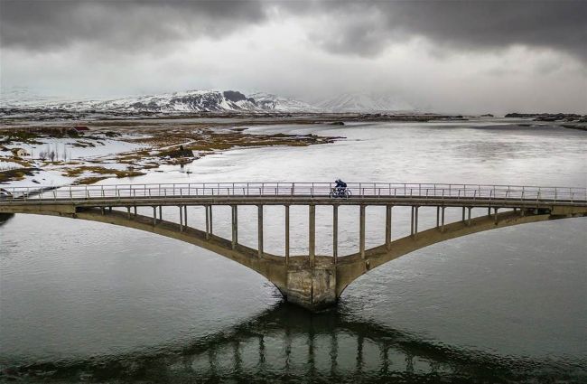 As we come in to land and I lay my eyes on the landscape for the first time, it is nothing like I expect. There are no roiling waterfalls, bubbling springs, dramatic cliffs, or smoking volcanoes. There is just… flatness. The sea meets the land in fractal fingers that look like they could be washed away in just one extra-large wave. Resisting the sea’s advances are acres of black gravel, akin to the reclaimed spoil heaps of former mining towns. Late snow covers much of the ground, though not enough to give a winter wonderland scene. The light is flat, grey and murky, and so it will stay for most of my trip.