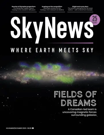 SkyNews, Canada's magazine of astronomy and stargazing, is your guide to observing the night sky. It is published six times a year by The Royal Astronomical Society of Canada and SkyNews Inc. Each issue contains feature articles on observing and astronomy science, a seasonal star chart, stunning celestial photos, expert equipment advice, and the latest news from the world of astronomy. The magazine features some of the world's best science writers and astrophotographers, including Alan Dyer, Nicole Mortillaro, Ivan Semeniuk and Elizabeth Howell.