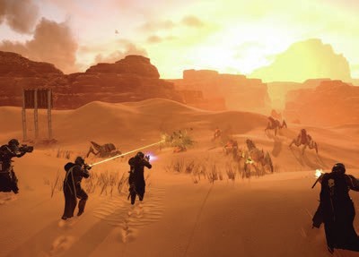 “Jeez, whose idea was it to wear fully body armour AND black cloaks in the desert?”