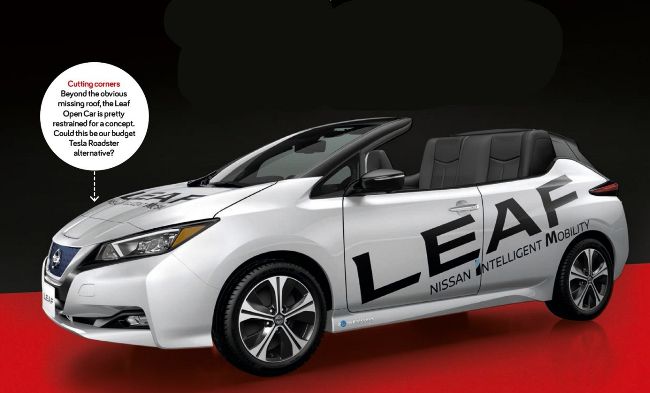 That missing roof makes the Leaf Open Car concept one of only a handful of all-electric open tops, alongside Tesla’s Roadster.