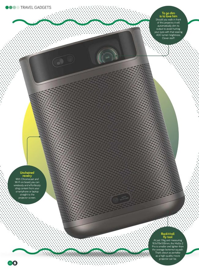 Lightweight and compact enough to fit in a small backpack or tote, it can run off any USB powerbank of 65W or more to provide up to 200in of al-fresco big-screen joy – although, if you’re watching outdoors, you’ll need to wait until after sunset to get a clear and punchy picture.