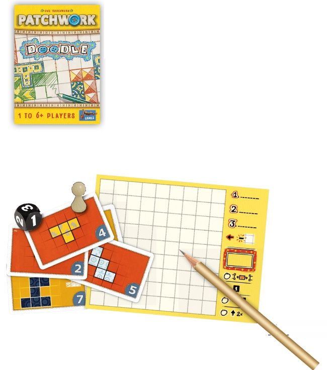 Adding another patch to the polyomino-quilted world of Patchwork and its quicker version Patchwork Express is Patchwork Doodle. Players are once again trying to fill a grid with Tetrisstyle pieces – except in this roll-andwrite addition you’ll being drawing them in.