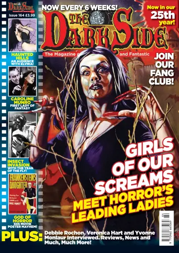Women in peril have been an essential fixture in horror movies ever since King Kong got his hairy paws on Fay Wray and Janet Leigh took an ill-advised shower in the presence of Master Bates. This issue we pay tribute to some of the girls of our screams with a choice selection of brand new and extremely candid interviews with the likes of Hammer babes Caroline Munro and Yvonne (Brides of Dracula) Monlaur, top splatter siren Debbie Rochon and the legendary horror hostess Elvira.