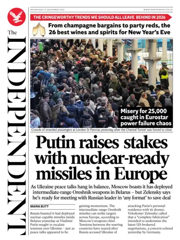 Wednesday, 31 December 2025 Today's edition of The The Independent