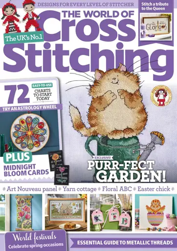 Your brand-new digital edition, issue 331 (April 2023) of The World of Cross Stitching is out now and it’s packed with 72 patterns, starting with our cover star – the adorable Margaret Sherry kitty! Inside you’ll also find an astrology wheel, Easter chick, tribute to the Queen, seasonal floral cards & spring events around the world! Plus, enjoy lots more charts, tips & ideas to inspire.