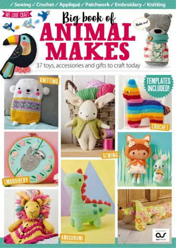 Big Book of Animal Makes Take a walk on the wild side with the Big Book of Animal Makes! Inside the 132-page magazine, you’ll find 37 patterns to crochet, knit, sew, embroider, and make, plus templates and step-by-step instructions, so you can craft your very own cuddly critters.