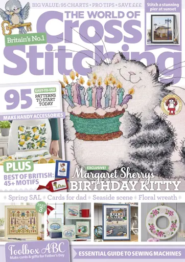 Your brand-new digital edition, issue 294 (June 2020) of The World of Cross Stitching is out now! Send birthday wishes with our cover star – an adorable cat and celebration cake by Margaret Sherry! Head to the seaside with Fiona Baker’s stunning nostalgic pier and Emma Horan’s bright Cornish coastal scene. Make citrus fruits kitchen accessories by Amanda Butler, try a pretty floral double hoop by Amanda Gregory and choose from four vintage-style Father’s Day cards by April Rose. There’s also prizes to win, the latest stitchy news and expert advice.